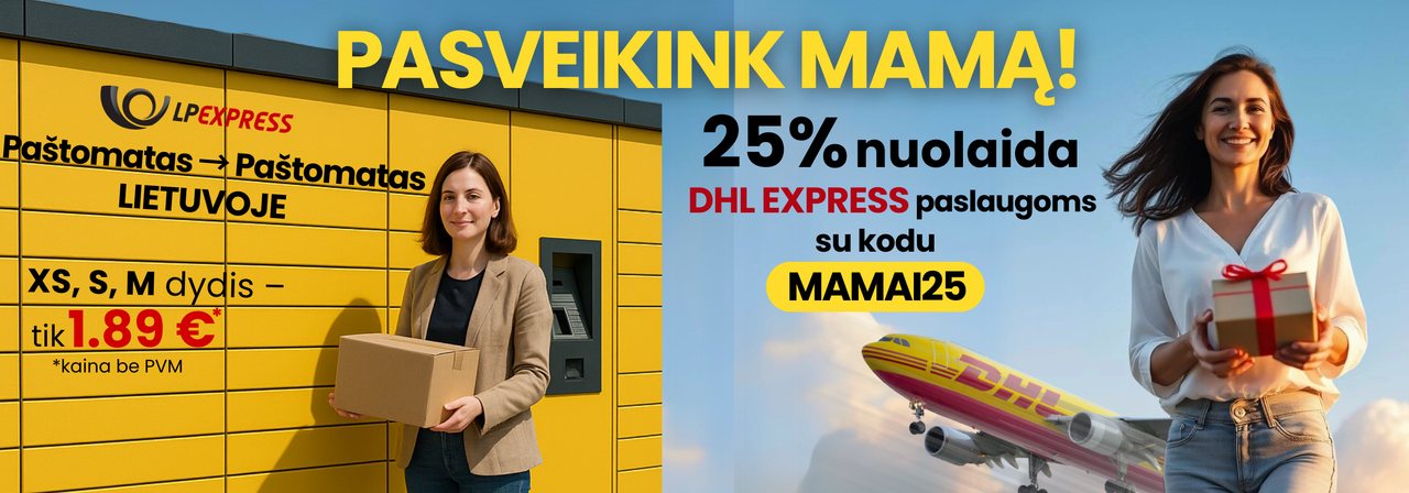 Tik iki gegužės 4 d. siųsk dovaną su DHL Express ir gauk 25 % nuolaidą siuntimui su kodu MAMAI25.