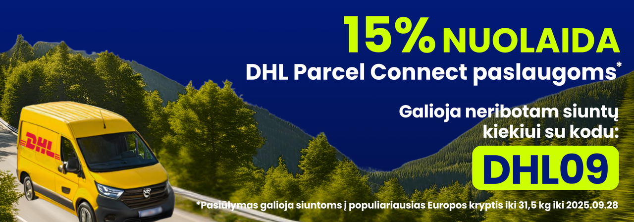 Naudokite nuolaidos kodą DHL09 ir iki rugsėjo 28 d. gaukite 15 % nuolaidą DHL Parcel Connect paslaugoms.